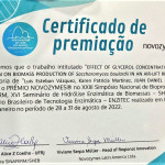 En la oportunidad, presentaron resultados de la investigación académica realizada por el referido equipo, el cual se tituló: “Effect of glycerol concentration and aeration on biomass production of Saccharomyces boulardii in an air-lift reactor”. El mencionado estudio, tuvo gran receptividad por los participantes del evento y además, fue galardonada con el PREMIO NOVOZYMES© a los mejores trabajos.