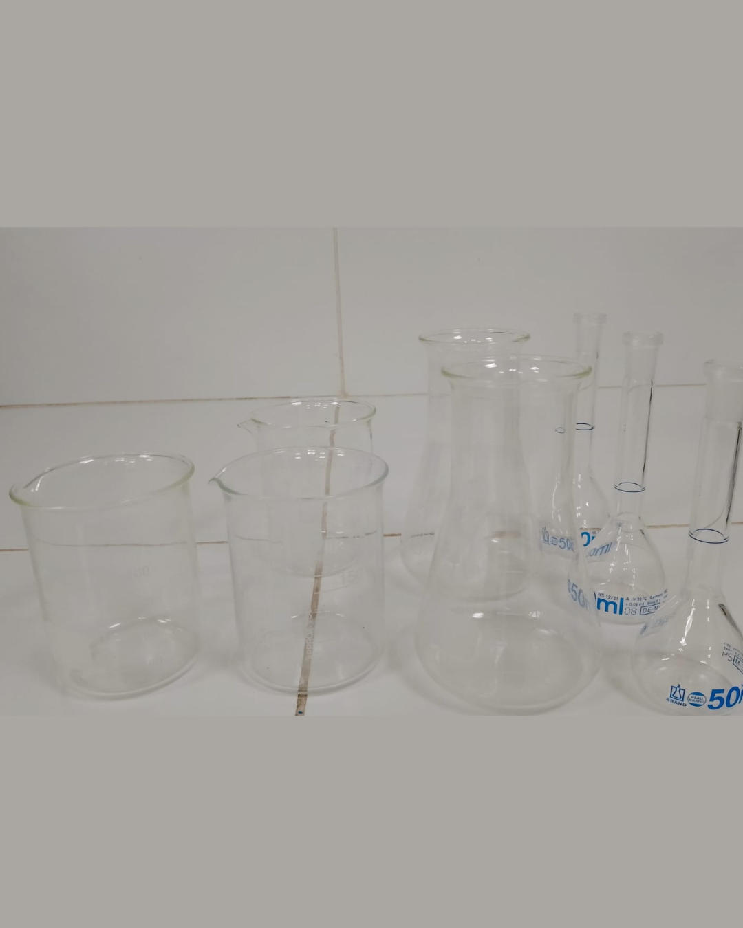 Erlenmeyer graduados de 250 mL (2) y vasos precipitados graduados de 250 mL (4)