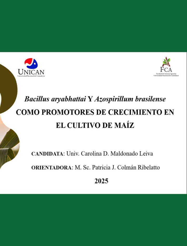 “Bacillus aryabhattai y Azospirillum brasilense como promotores de crecimiento en el cultivo de maíz ”, desarrollado bajo la dirección de la Prof. Patricia Colmán.