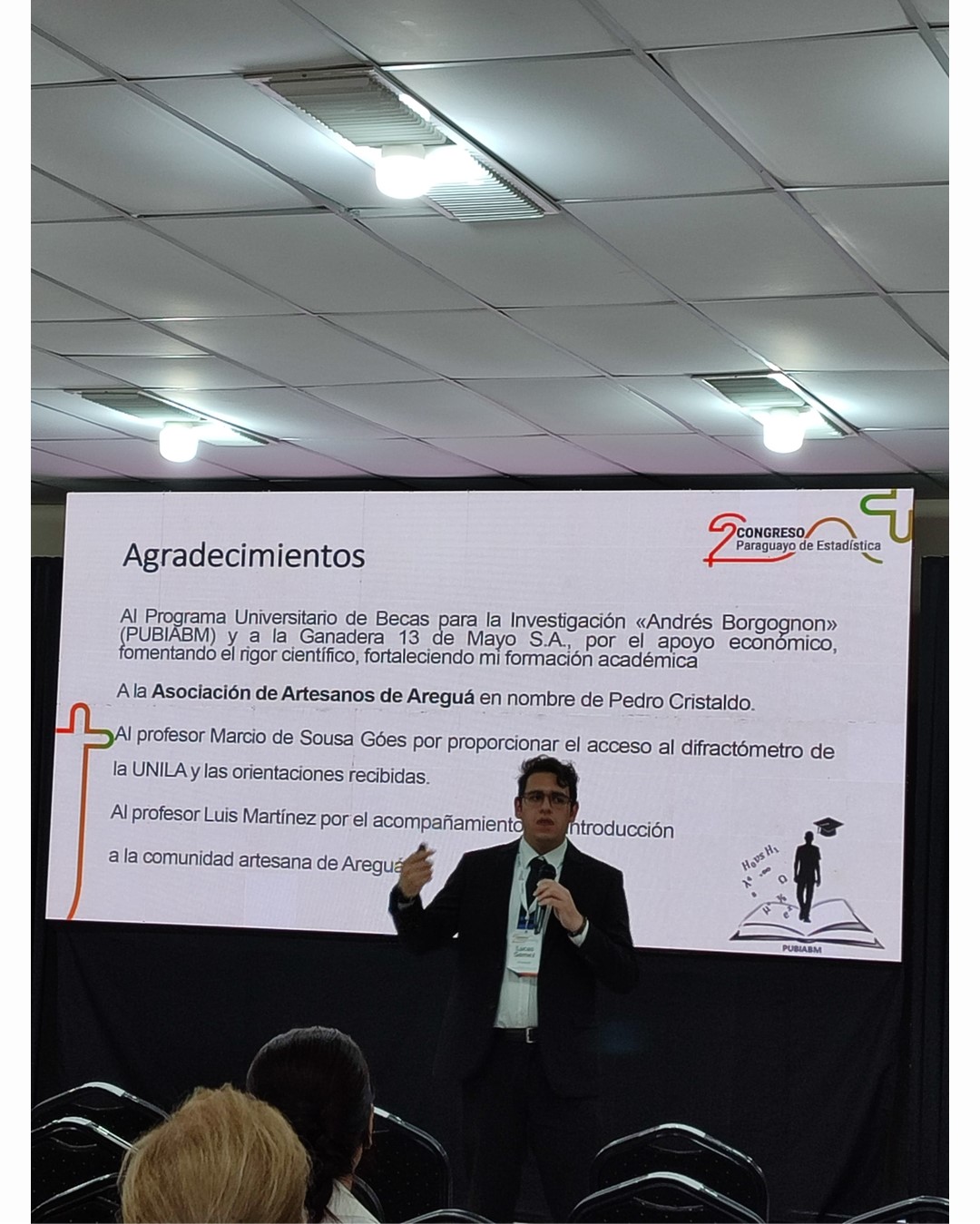 El Lic. en Física, Lucas Gómez, beneficiario del Programa Universitario de Becas para la Investigación “Andrés Borgognon Montero” (PUBIABM – Convocatoria 2024), participó en la modalidad oral presencial en el congreso realizado en la FACEN -UNA, presentando la ponencia: “Aplicación de técnicas multivariadas para la clasificación y análisis de arcillas comerciales mediante métodos de caracterización”.