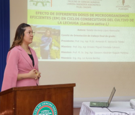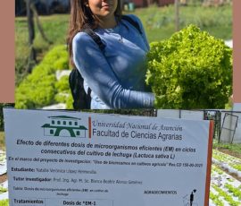 La tesis titulada: “Efecto de diferentes dosis de microorganismos eficientes (EM) en ciclos consecutivos del cultivo de lechuga (Lactuca sativa L)”, fue defendida exitosamente por Natalia Verónica López, como parte de la culminación de su carrera en Ingeniería Agronómica (FCA/UNA – Filial Caazapá).