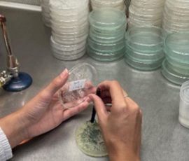 La becaria del Programa Universitario de Becas para la Investigación, «Andrés Borgognon Montero» (PUBIABM – 2.ª Cohorte 2025), Cecilia Cáceres (Ing. Agronómica – FCA/UNA), avanza en su trabajo final de grado titulado: “Bioprospección de aislados de Trichoderma spp. de la Región Occidental para el control biológico de Macrophomina phaseolina y Fusarium spp. en soja”, desarrollado bajo la tutoría del Prof. Adans Colman.