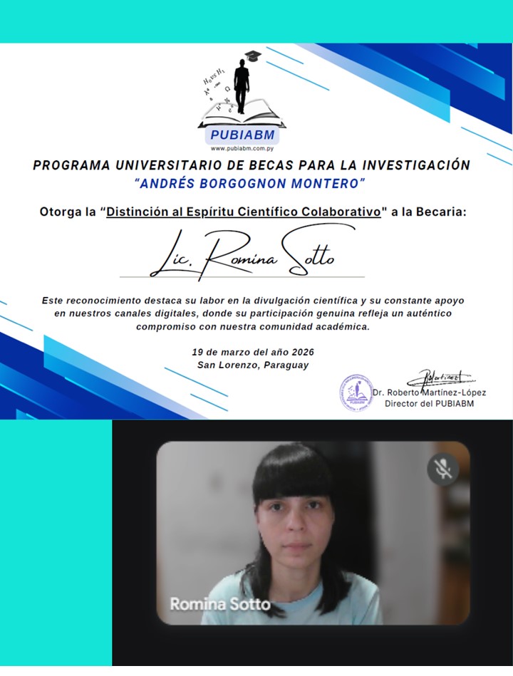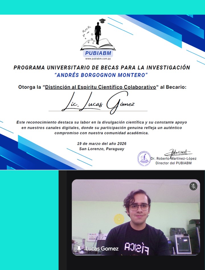 Este reconocimiento destaca explícitamente su contribución en la divulgación científica y su constante apoyo hacia la misión desarrollada por el PUBIABM mediante los canales digitales, donde su participación refleja un auténtico compromiso con nuestra comunidad académica.